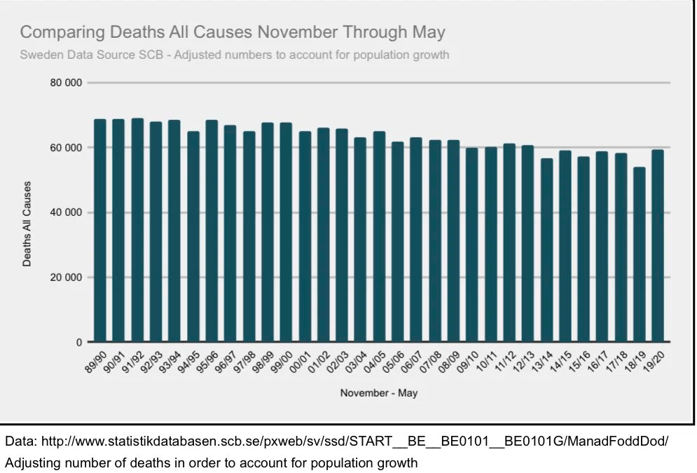 The false negative and false positive rates for the COVID-19 diagnostic tests are too high relative to the infection rate and far higher than the death rate. This means that the data pushed by media, CDC, WHO, politicians is useless…nothing but propaganda. I will leave the reasons people would do that for another post. Since the false positive and false negative rates are high and since the data are skewed by many other biases (e.g. co-morbidities, rate of testing, test time, test type), then the overall death rate from all causes sorted by age group is the only meaningful statistic. Is the overall death rate increasing or decreasing?