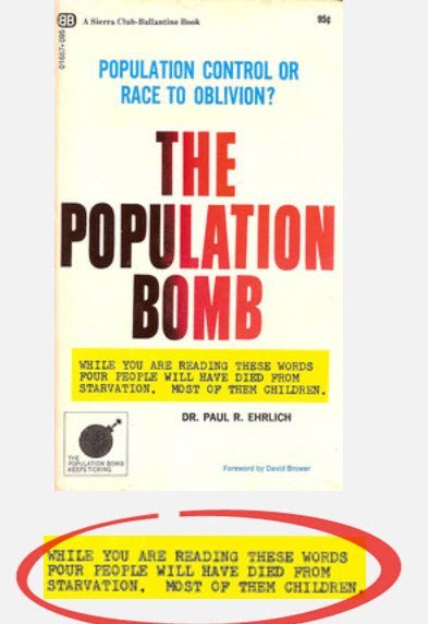 In fact, world population growth has been declining for decades, is expected to continue declining, and is now below replacement levels in multiple countries. But you may not perceive that decline yet because the same AGW proponents producing the global warming fraud are inducing people to move to the big cities and out of rural areas. It is no mystery that some of those same AGW proponents are buying up huge amounts of rural land, farms and ranches.