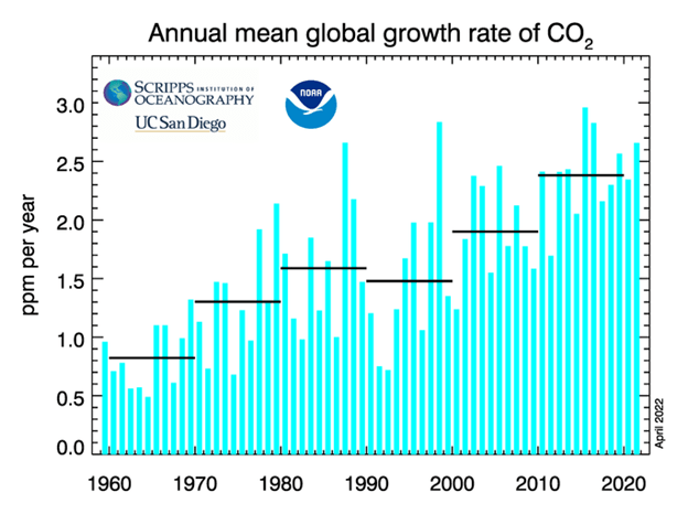 Tans, P.P. (2006). Acceleration of the rate of growth of atmospheric carbon dioxide. NOAA Earth System Research Laboratory. https://gml.noaa.gov/publications/annual_meetings/2006/abstracts/talks_2006_02.pdf